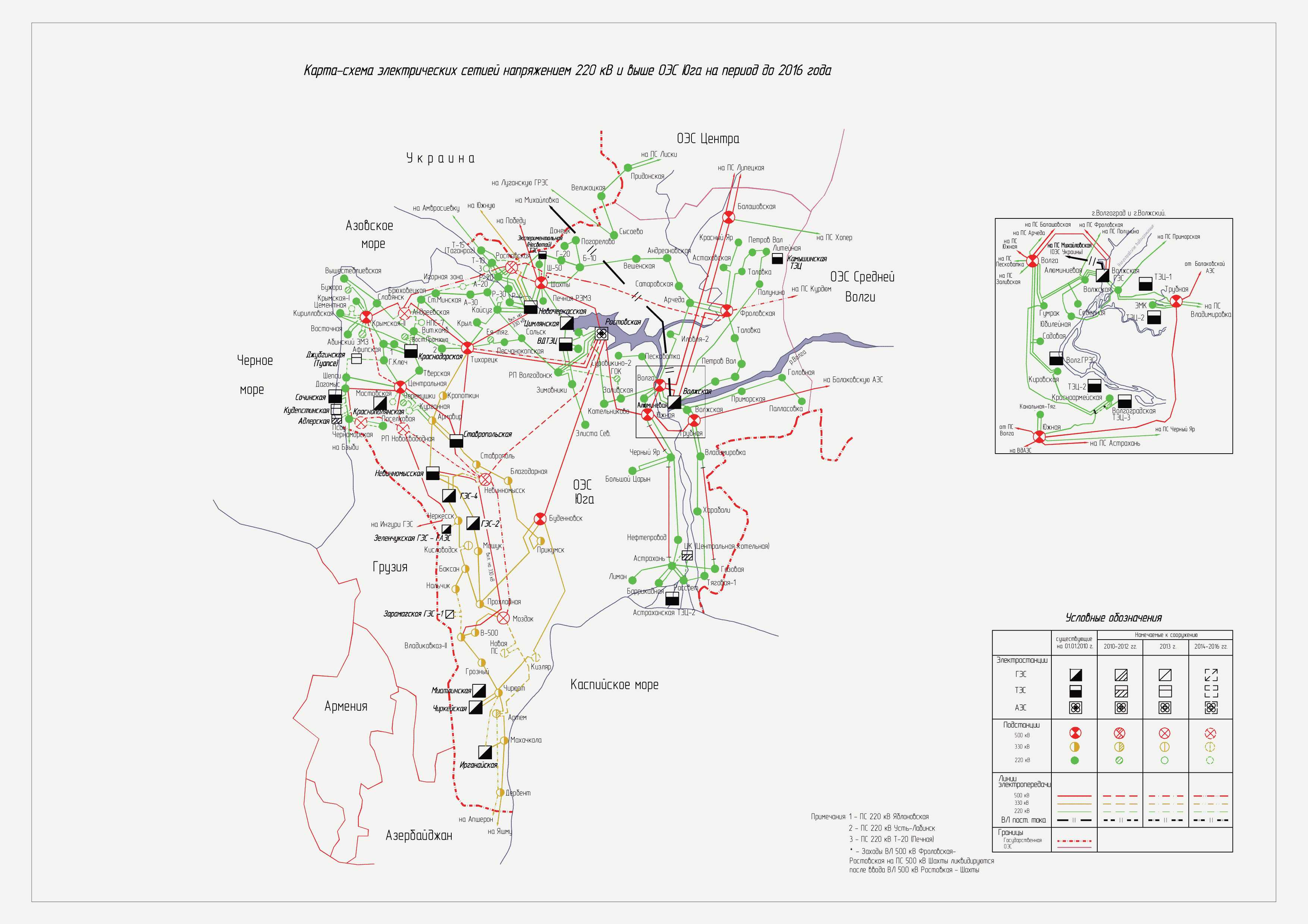 Карта-схема электрической сети 220 кВ и выше на период до 2016 года ОЭС Средней Волги