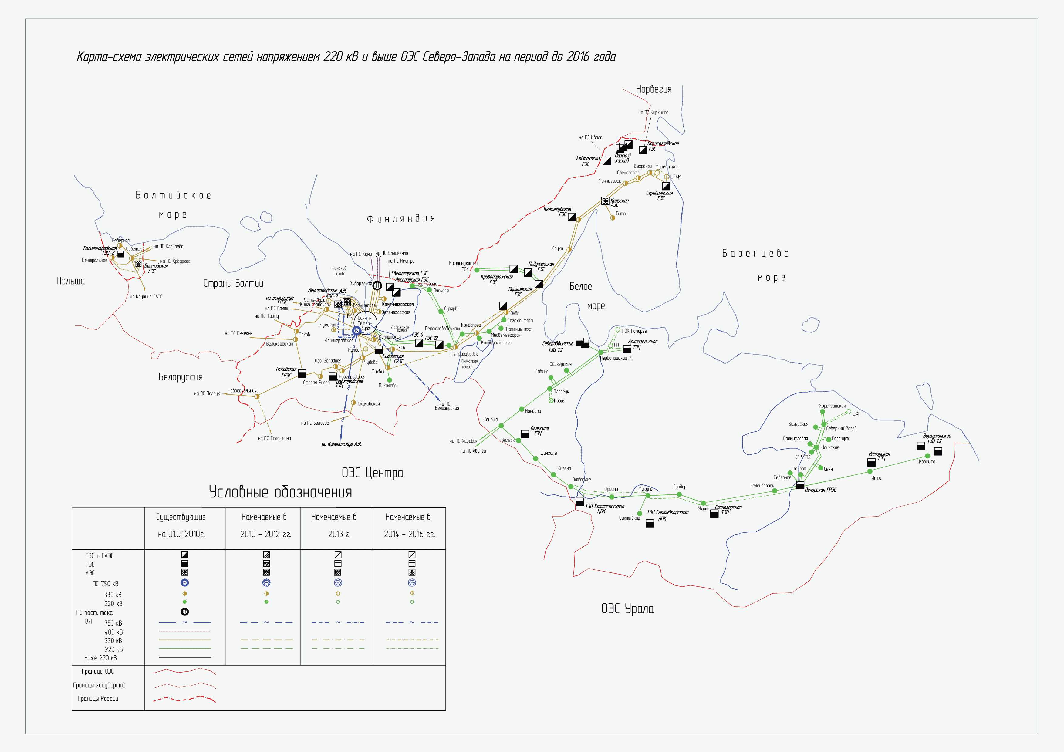 Карта-схема электрических сетей напряжением 220 кВ и выше на период до 2016 года г. Санкт-Петербург