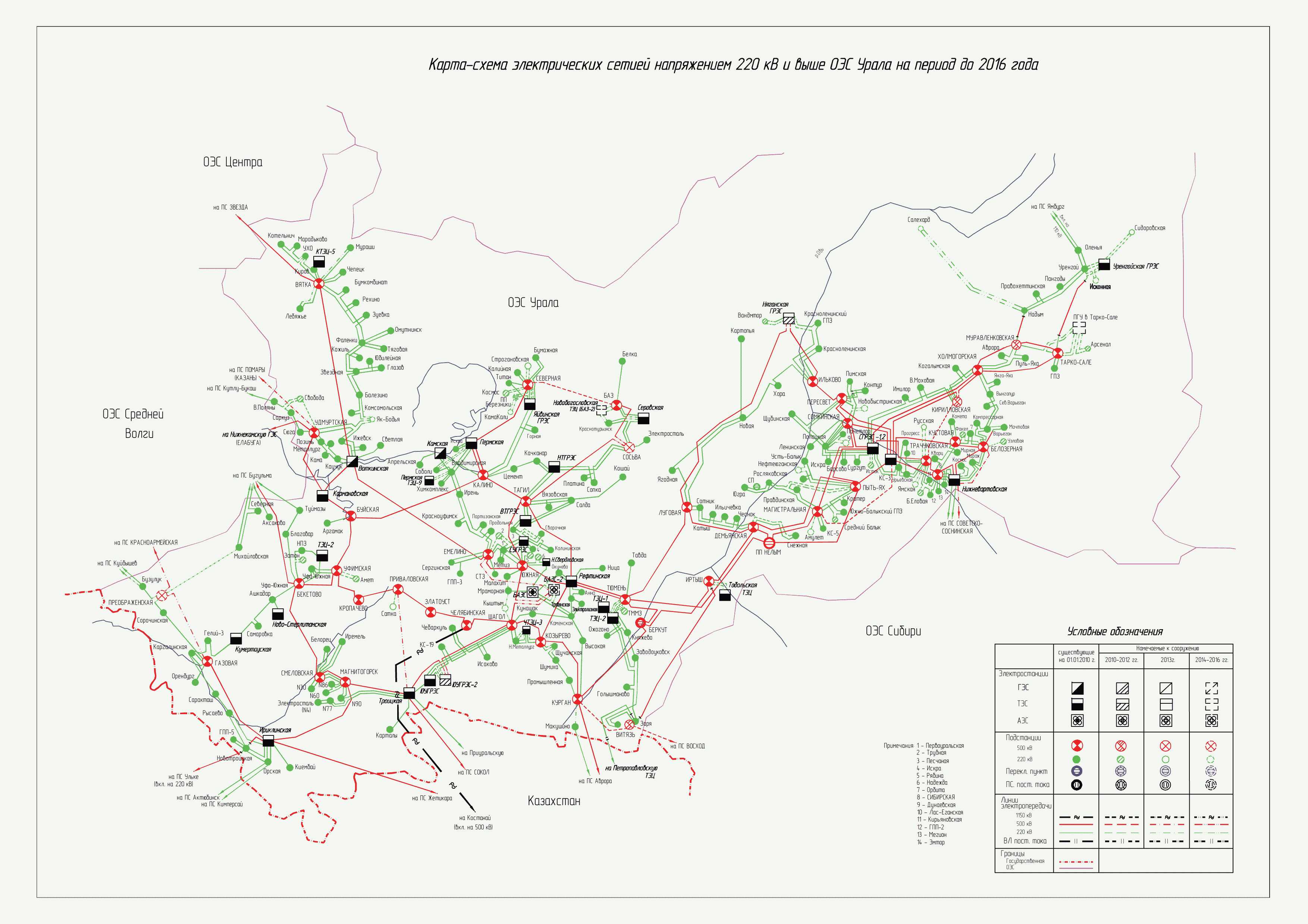 Карта-схема электрических сетей напряжением 220 кВ и выше ОЭС Сибири на период до 2016 года