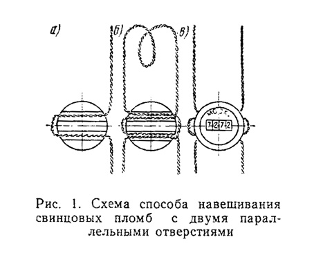 § 10. Пломбы должны быть навешены на проволоку, предварительно скрученную в две нити. Скручивание проволоки производится из расчета четырех витков на сантиметр длины.