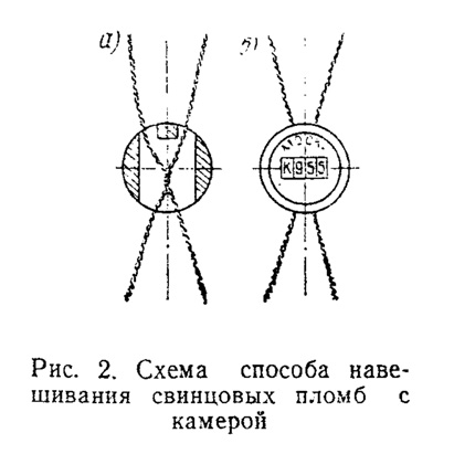 После этого образовавшийся узел втягивается до отказа в камеру, и пломба зажимается пломбировочными тисками.