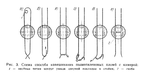 В каждую из пломб продевается один конец отрезка пломбировочной проволоки (рис. 1, а).