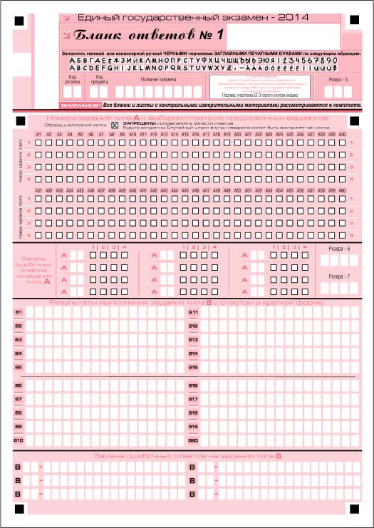При заполнении области ответов на задания типа A следует строго соблюдать инструкции по выполнению работы (к группе заданий, отдельным заданиям), приведенные в КИМ. В столбце, соответствующем номеру задания в области ответов на задания типа A, следует делать не более одной метки. При наличии нескольких меток такое задание заведомо будет считаться неверно выполненным.