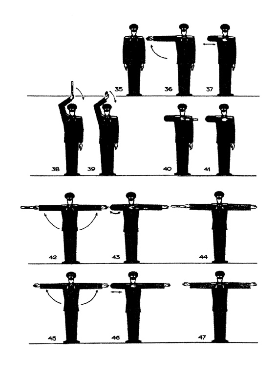 Исходное положение - основная стойка (сигналы "Левый поворот" или "Разрешено движение транспорта в прямом направлении с поворотом направо").