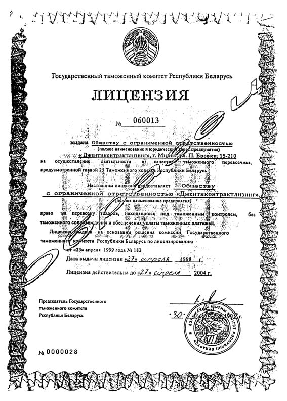 │Дата выдачи лицензии 27 апреля 1999 г. │