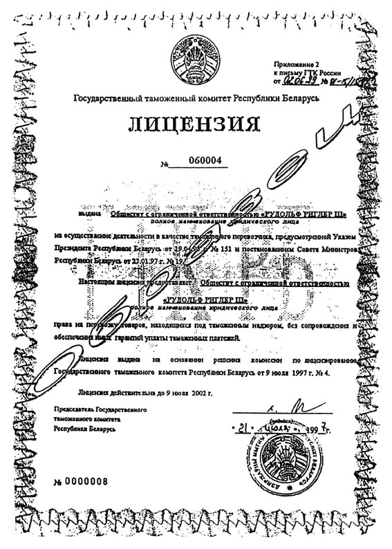 │Лицензия действительна до 9 июля 2002 г. │
