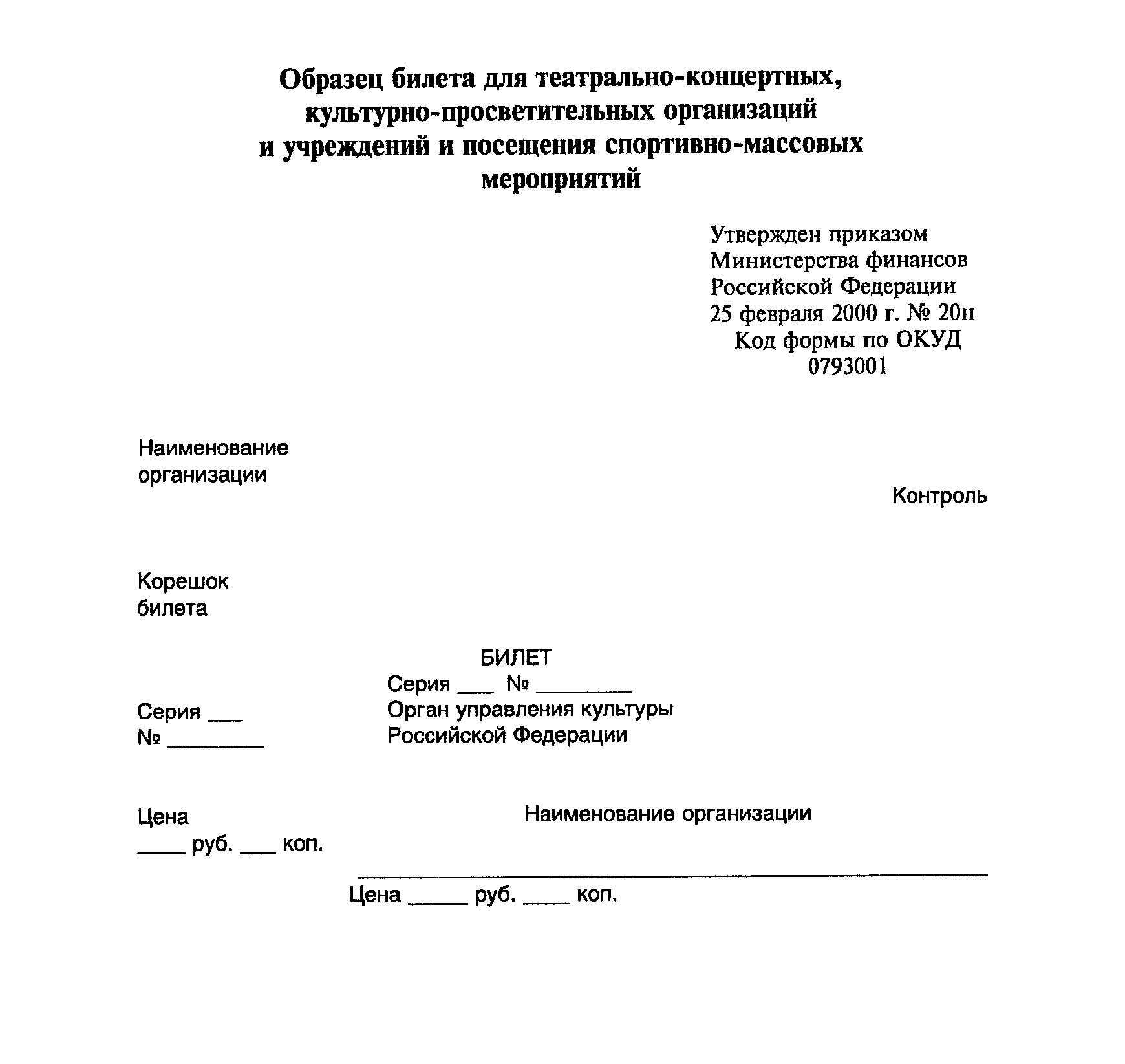 │билета Код формы по ОКУД │