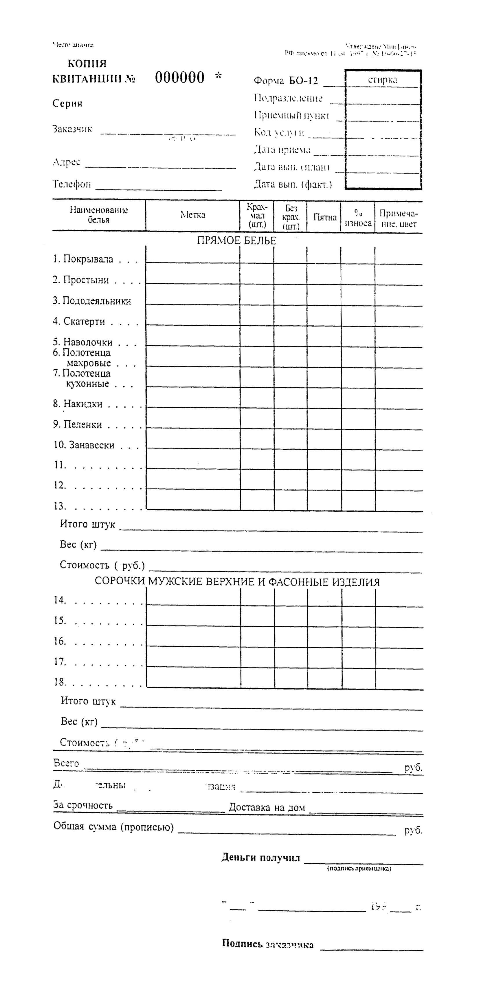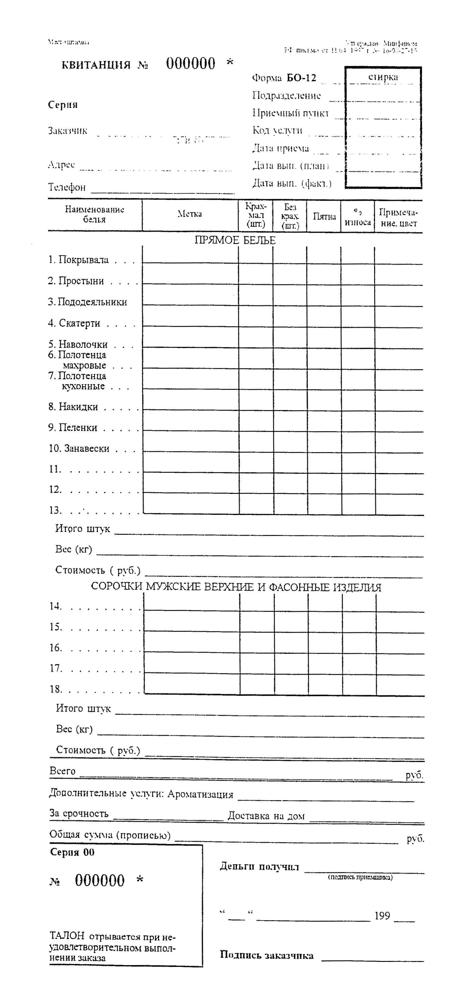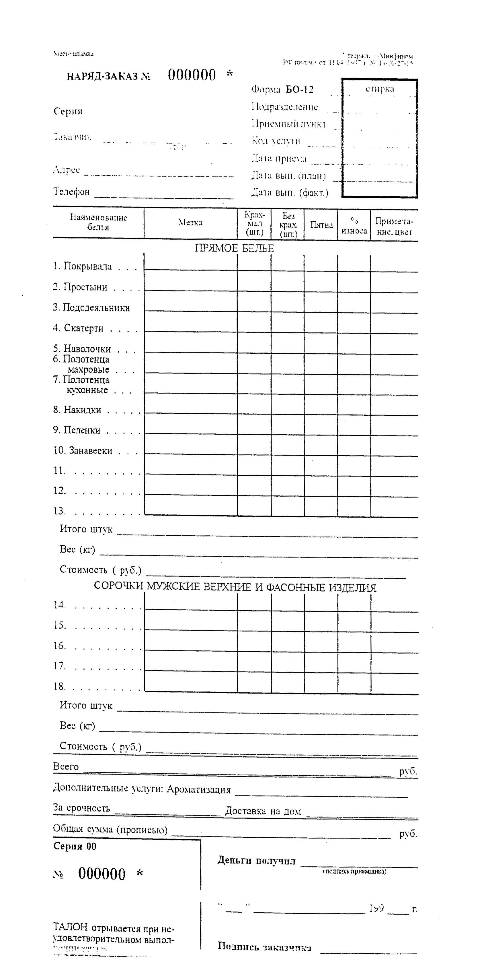 См. данный графический объект (Форма БО-12: НАРЯД-ЗАКАЗ (лицевая и оборотная стороны), КВИТАНЦИЯ, КОПИЯ КВИТАНЦИИ).