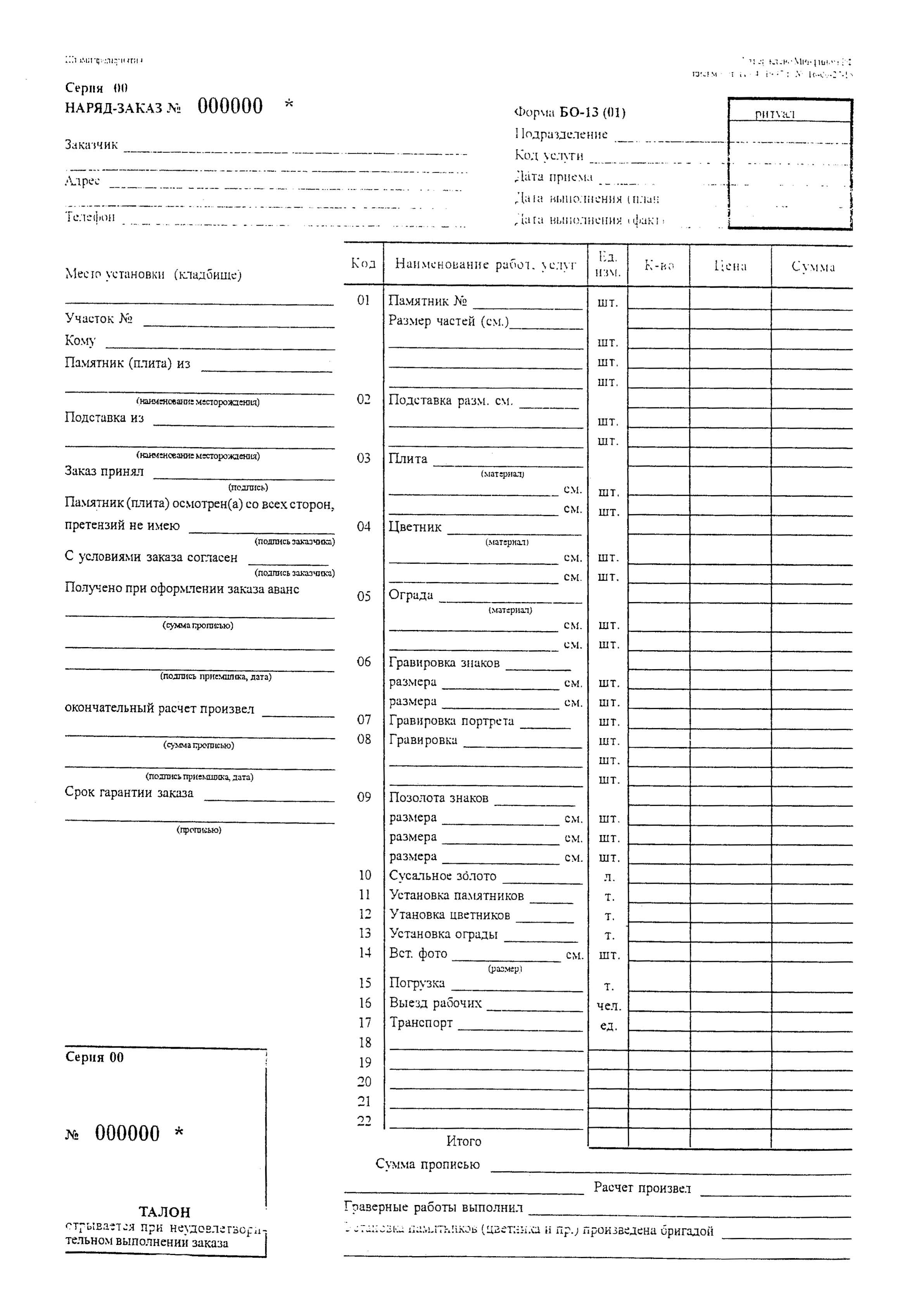 Наряд-заказ (Форма БО-13 (01))