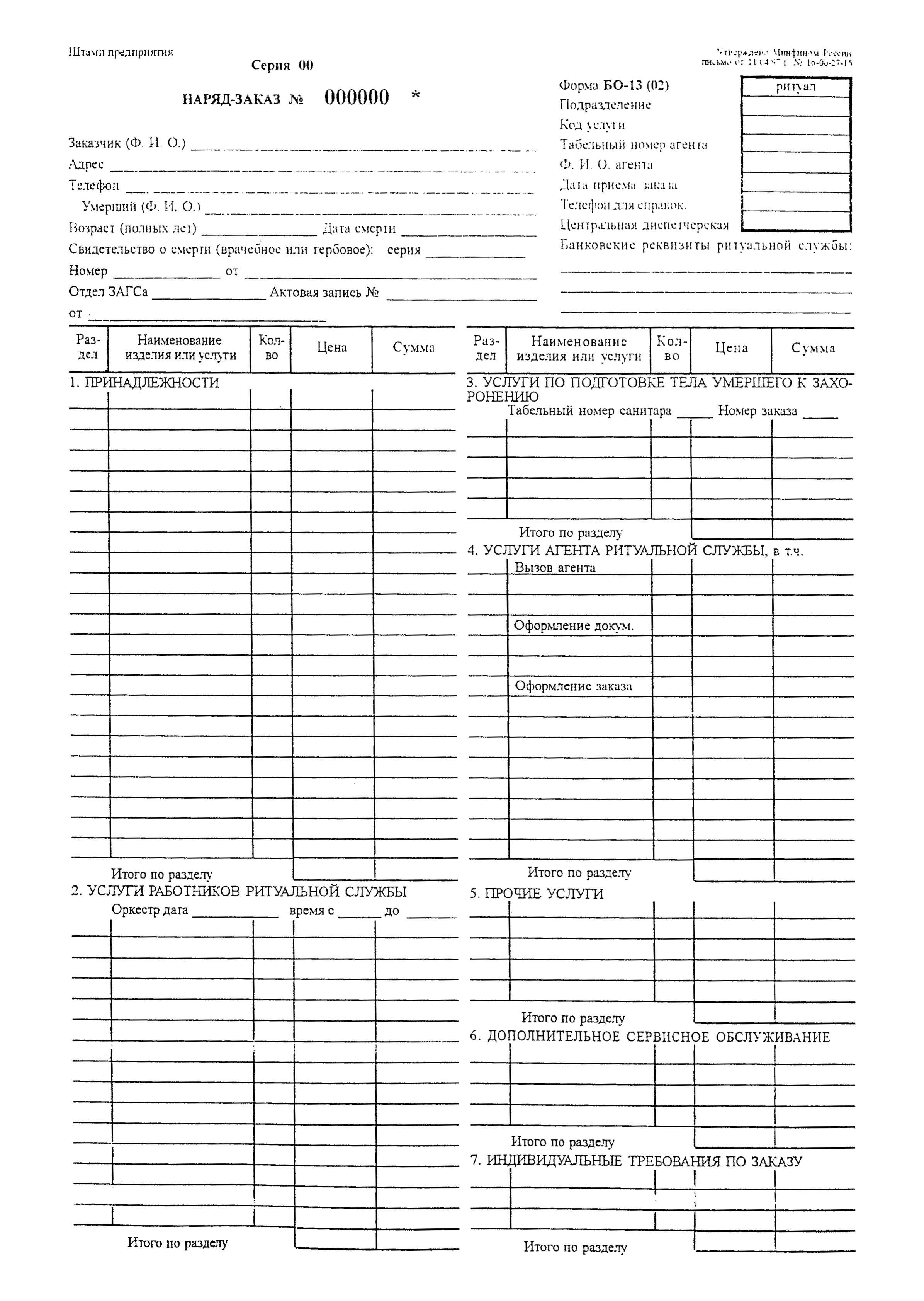 Наряд-заказ (Форма БО-13 (02))