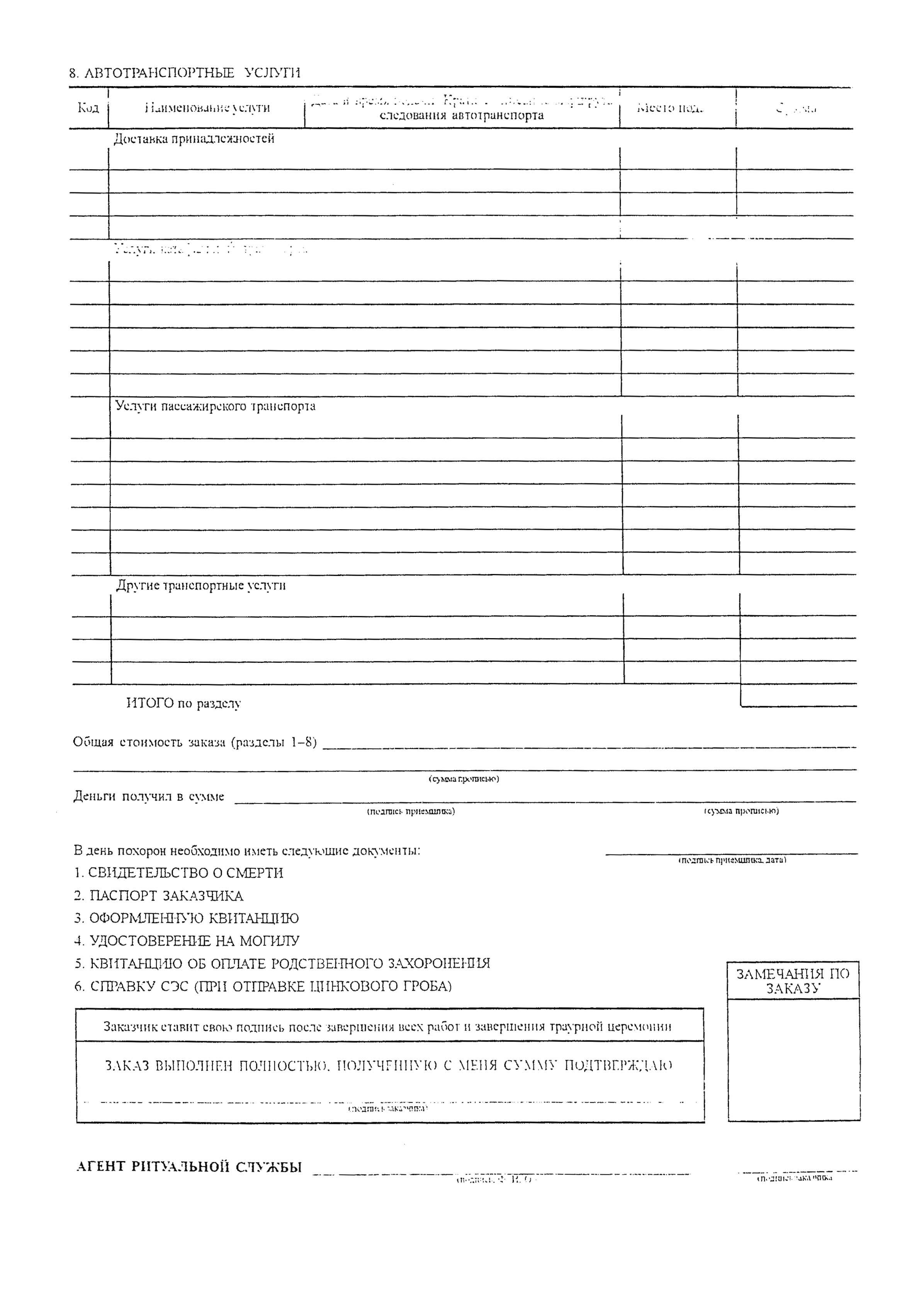 АГЕНТ РИТУАЛЬНОЙ СЛУЖБЫ _______________________ ______________