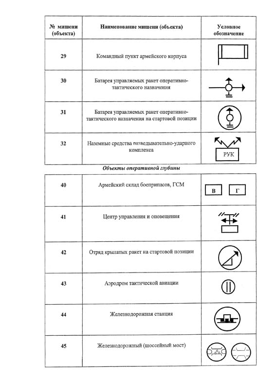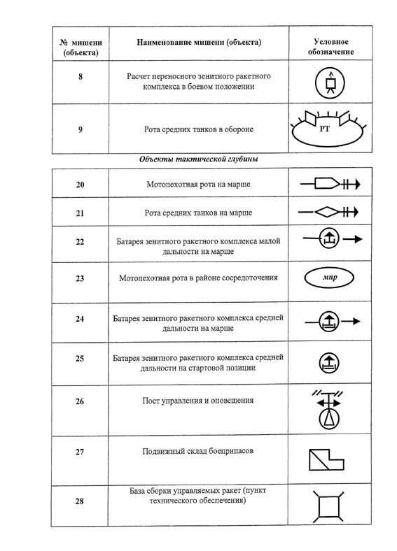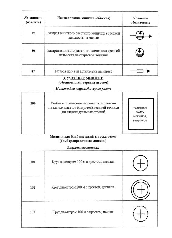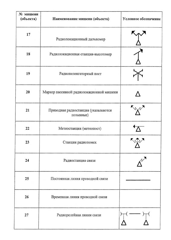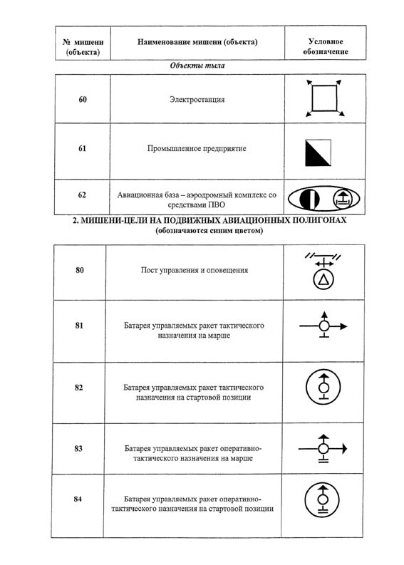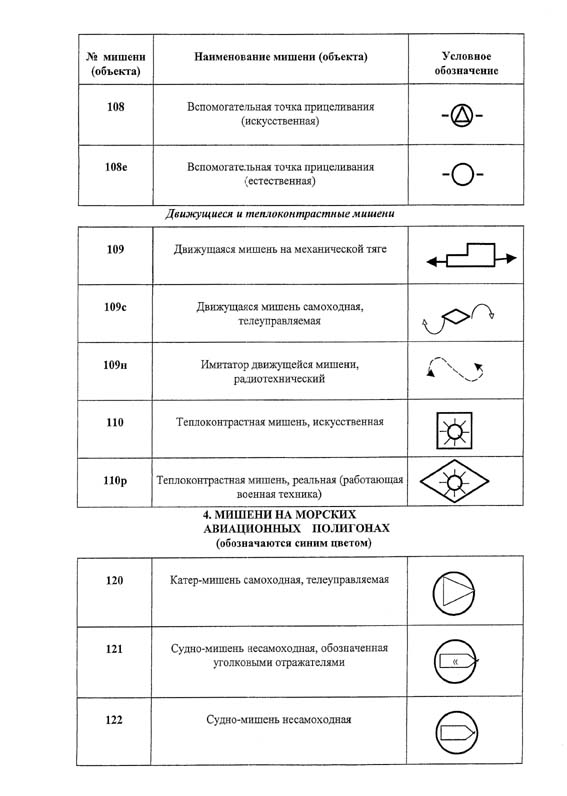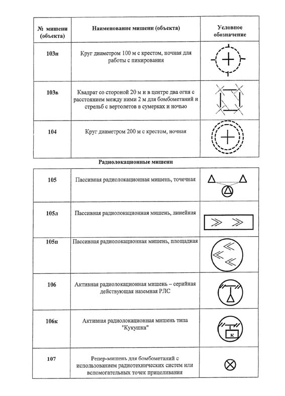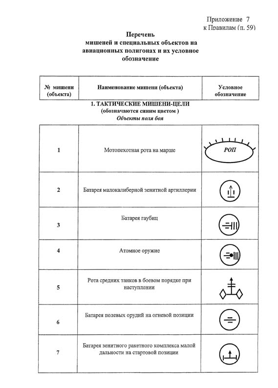 Приложение N 7. Перечень мишеней и специальных объектов на авиационных полигонах и их условное обозначение