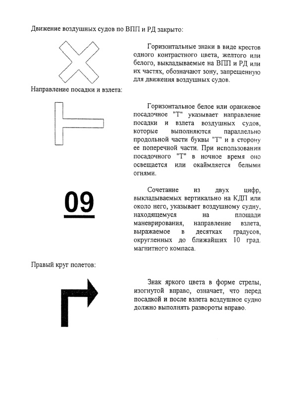 Горизонтальные знаки в виде крестов одного контрастного цвета, желтого или белого, выкладываемые на ВПП и РД или их частях, обозначают зону, запрещенную для движения воздушных судов.
