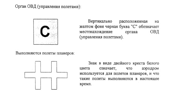 Знак в виде двойного креста белого цвета означает, что аэродром используется для полетов планеров и что такие полеты выполняются в настоящее время.