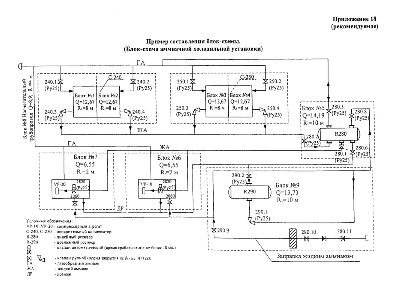 Приложение 18. Пример составления блок-схемы (блок-схема аммиачной холодильной установки)