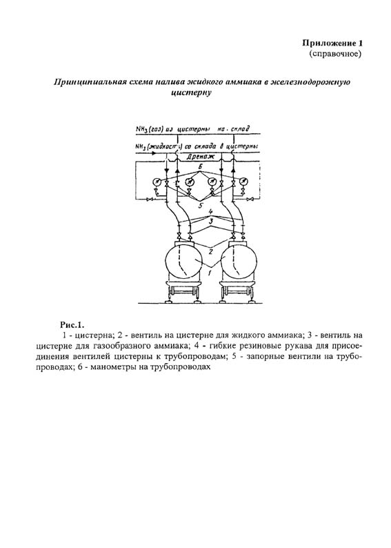 Приложение 1. Принципиальная схема налива жидкого аммиака в железнодорожную цистерну