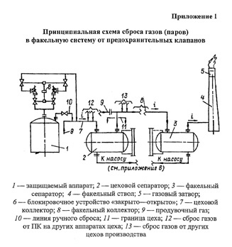 Приложение 1. Принципиальная схема сброса газов (паров) в факельную систему от предохранительных клапанов