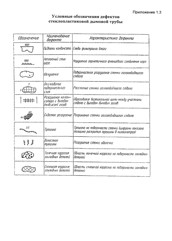 Приложение 1.3. Условные обозначения дефектов стеклопластиковой дымовой трубы