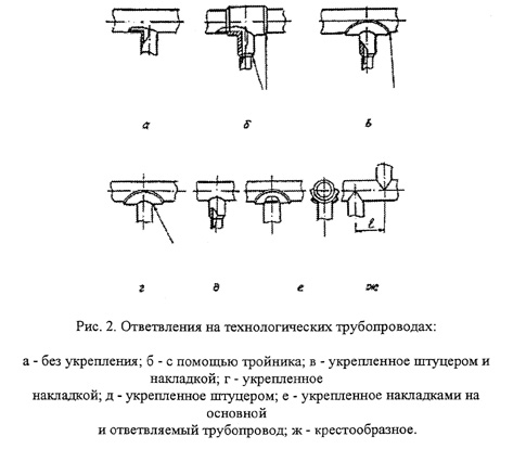 Рис. 2. Ответвления на технологических трубопроводах