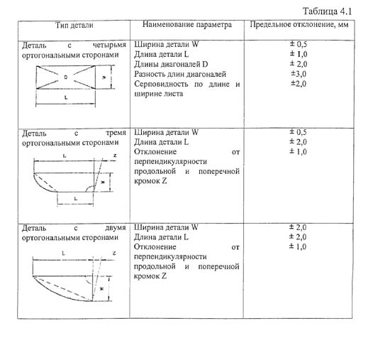 │ортогональными сторонами│Длина детали L │ +/- 2,0 │