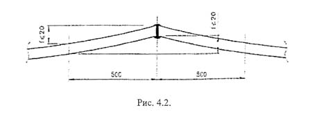 4.5.4. Полотнища не должны иметь угловых деформаций стыков более 20 мм на длине 1000 мм (рис. 4.2).