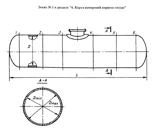 Эскиз N 1 к разделу "6. Карта измерений корпуса сосуда"