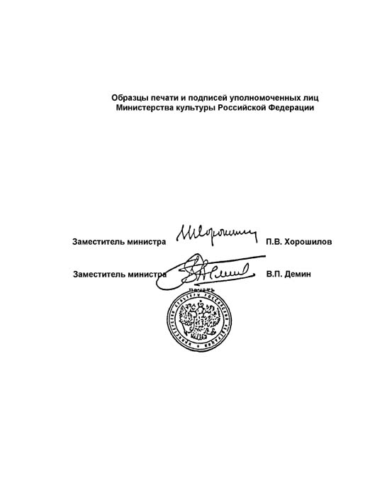 Образцы печати и подписей уполномоченных лиц Министерства культуры Российской Федерации