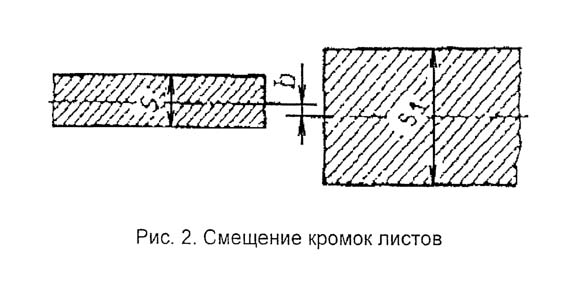 │Толщина свариваемых│ Максимально допустимые смещения стыкуемых │