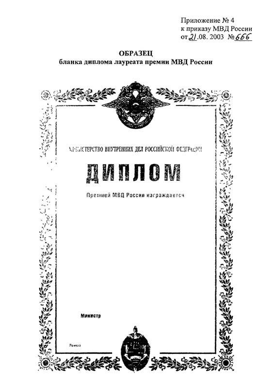 Приложение N 4. Образец бланка диплома лауреата премии МВД России