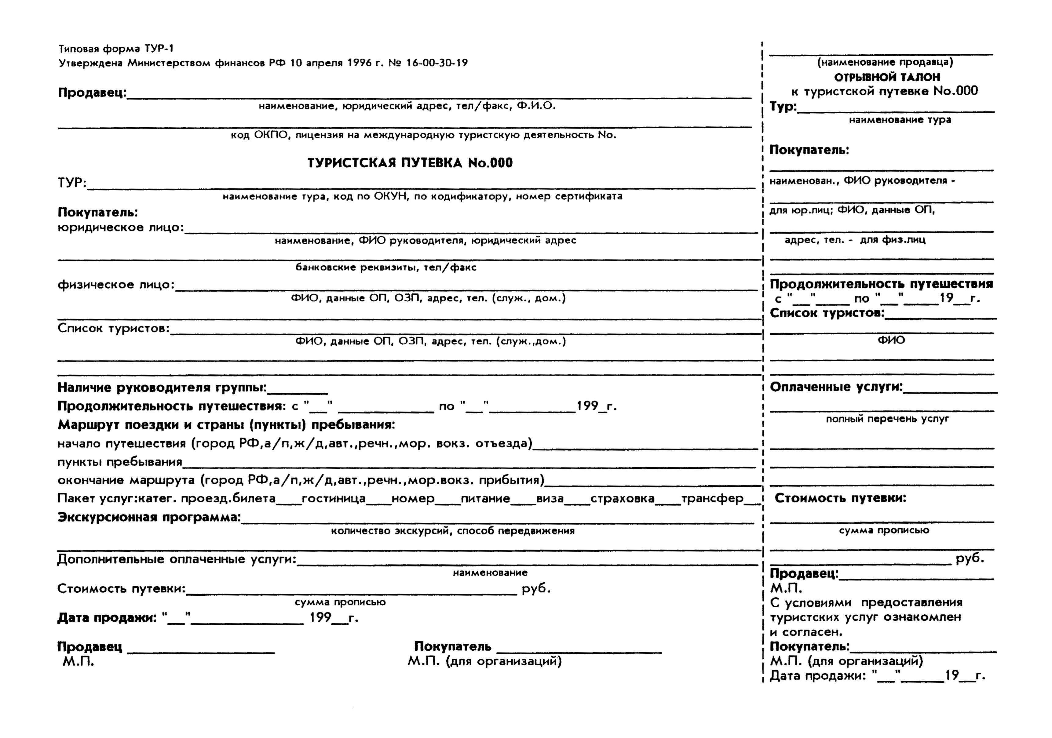│ ТУРИСТСКАЯ ПУТЕВКА N 000 │ │