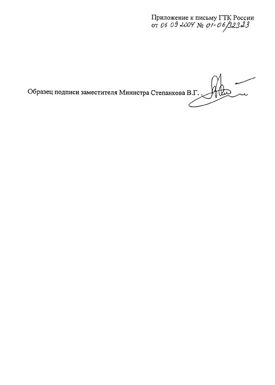 Образец подписи заместителя Министра Степанкова В.Г. (Подпись)