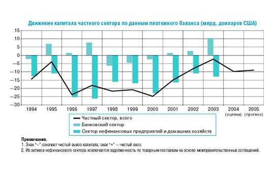 Вступление в силу с середины 2005 года положения о свободном открытии счетов за рубежом не приведет, по оценке Банка России, к росту оттока капитала, поскольку уже с 18 июня 2004 года актами валютного законодательства Российской Федерации юридическим лицам - резидентам предоставлено право использовать часть валютной выручки без ее зачисления на счета в уполномоченных банках в целях исполнения ими обязательств по кредитам и займам, привлеченным на срок более двух лет из стран - членов ОЭСР и ФАТФ. Вместе с тем в целях регулирования оттока капитала Банк России может воспользоваться предоставленными законодательством полномочиями по установлению требований о резервировании денежных средств как резидентами, так и нерезидентами при осуществлении ими операций, связанных с вывозом капитала.