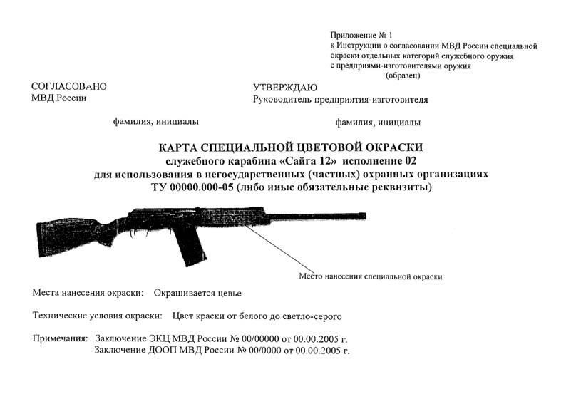 Приложение N 1. Карта специальной цветовой окраски служебного карабина "Сайга 12" исполнение 02 для использования в негосударственных (частных) охранных организациях ТУ 00000.000-05