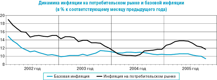 Ожидаемое по итогам 2005 года превышение целевого ориентира по инфляции обусловлено в основном краткосрочными и локальными факторами, что не является препятствием для последующего замедления темпов роста потребительских цен в соответствии с ориентирами среднесрочной программы социально-экономического развития.