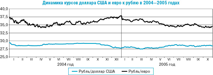 В данных условиях операции Банка России на внутреннем валютном рынке были направлены в основном на предотвращение чрезмерного повышения эффективного курса рубля под влиянием избыточного предложения иностранной валюты. Результатом этих операций была чистая покупка иностранной валюты. В частности, в феврале - октябре 2005 года Банк России выступал нетто-покупателем иностранной валюты. Однако в январе 2005 года для сглаживания резкого роста курса доллара США к рублю, обусловленного факторами внешнеэкономической конъюнктуры, объем продажи иностранной валюты Банком России существенно превысил объем ее покупки.