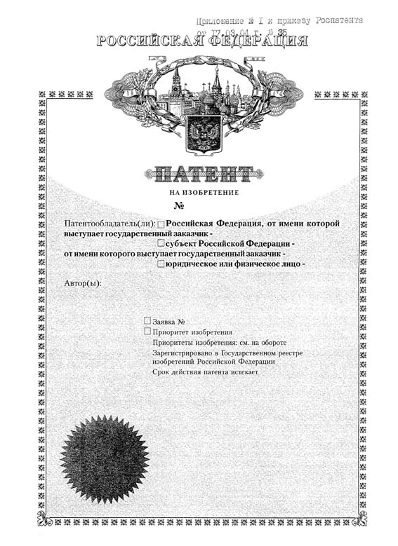 │ Патентообладатель(ли): │ │ Российская Федерация, от имени │
