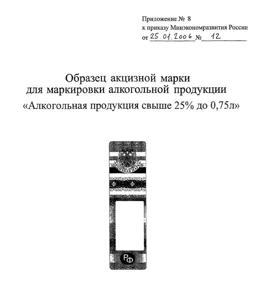 ОБРАЗЕЦ АКЦИЗНОЙ МАРКИ