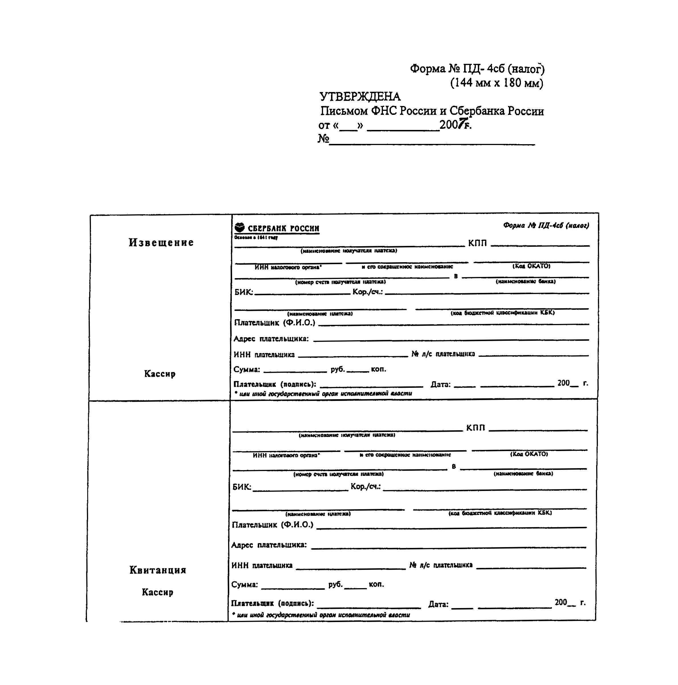 │ │ СБЕРБАНК РОССИИ Форма N ПД-4сб (налог) │
