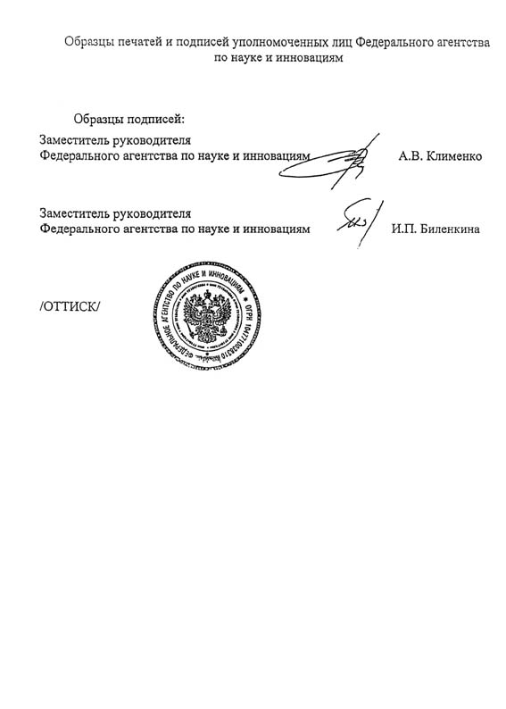Образцы печатей и подписей уполномоченных лиц Федерального агентства по науке и инновациям
