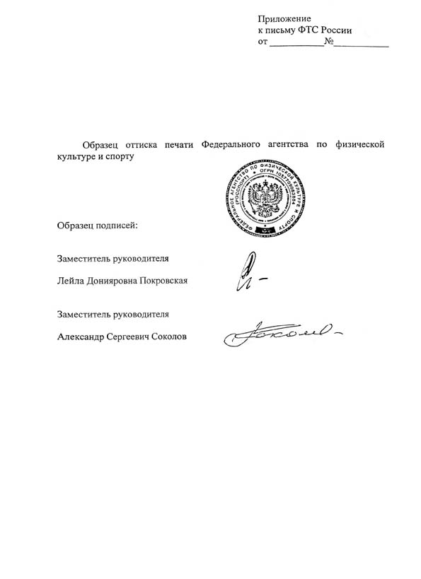 Приложение. Образец оттиска печати Федерального агентства по физической культуре и спорту