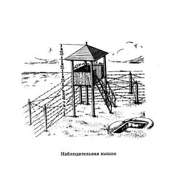 Для удобства наблюдения за подступами к охраняемому объекту между ограждениями (у внешнего ограждения) могут устраиваться наблюдательные вышки, оборудованные средствами связи, сигнализации, прожекторами и молниезащитными устройствами.