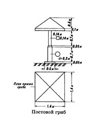 Постовой гриб окрашивается под цвет охраняемого объекта или под цвет окружающей местности.