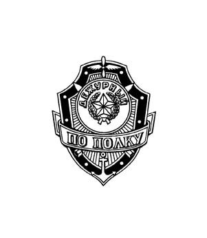 Поперек знака - изображение красной ленты с надписью золотистого цвета ПО ПОЛКУ (ПО БАТАЛЬОНУ, ПО РОТЕ, ПО КПП, ПО СТОЛОВОЙ, ФЕЛЬДШЕР, СИГНАЛИСТ-БАРАБАНЩИК, ОПЕРАТИВНЫЙ, ПО ШТАБУ, ПО ПАРКУ, ПО ВОИНСКОМУ ЭШЕЛОНУ) <*>.