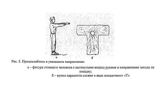 а - фигура стоящего человека с вытянутыми вперед руками в направлении захода на посадку;