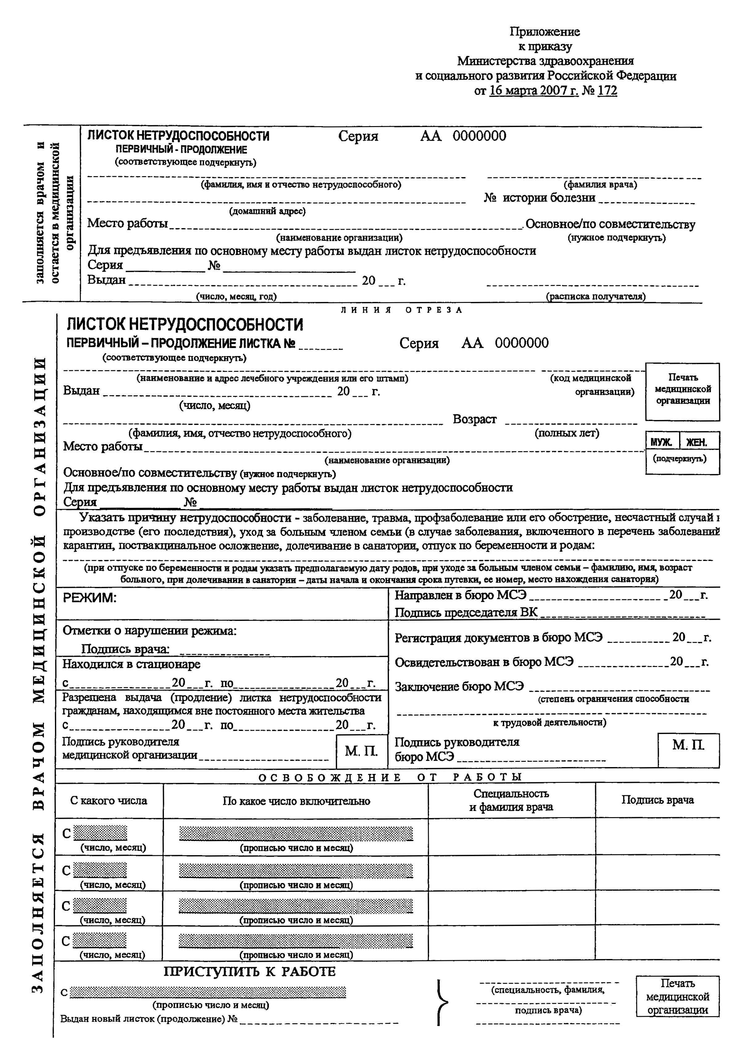 Приложение. Листок нетрудоспособности