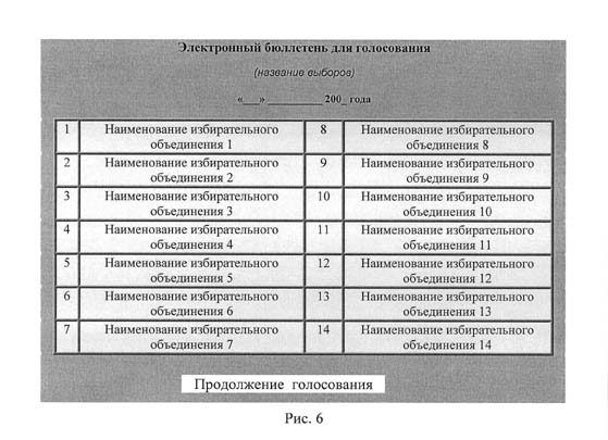 При электронном голосовании объем сведений о кандидатах, наименования избирательных объединений, а также фамилии, имена, отчества кандидатов из общефедеральной (общесубъектовой) части списка кандидатов и (или) его соответствующей региональной (территориальной) группы (части), эмблемы избирательных объединений соответствуют данным, размещаемым на бюллетенях, изготовленных на бумажном носителе.