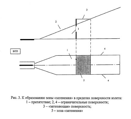 ограничительные поверхности; 3 - "затеняющая" поверхность;