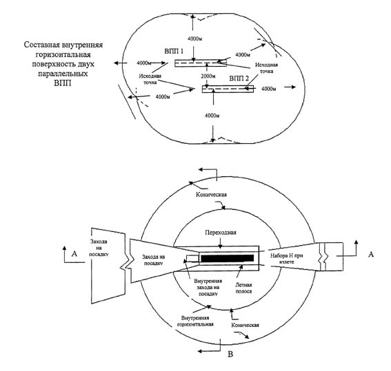 Составная внутренняя горизонтальная поверхность двух параллельных ВПП