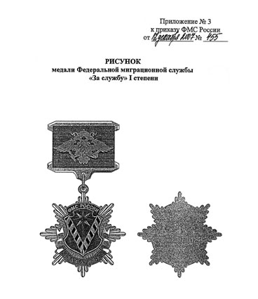 МЕДАЛИ ФЕДЕРАЛЬНОЙ МИГРАЦИОННОЙ СЛУЖБЫ "ЗА СЛУЖБУ"