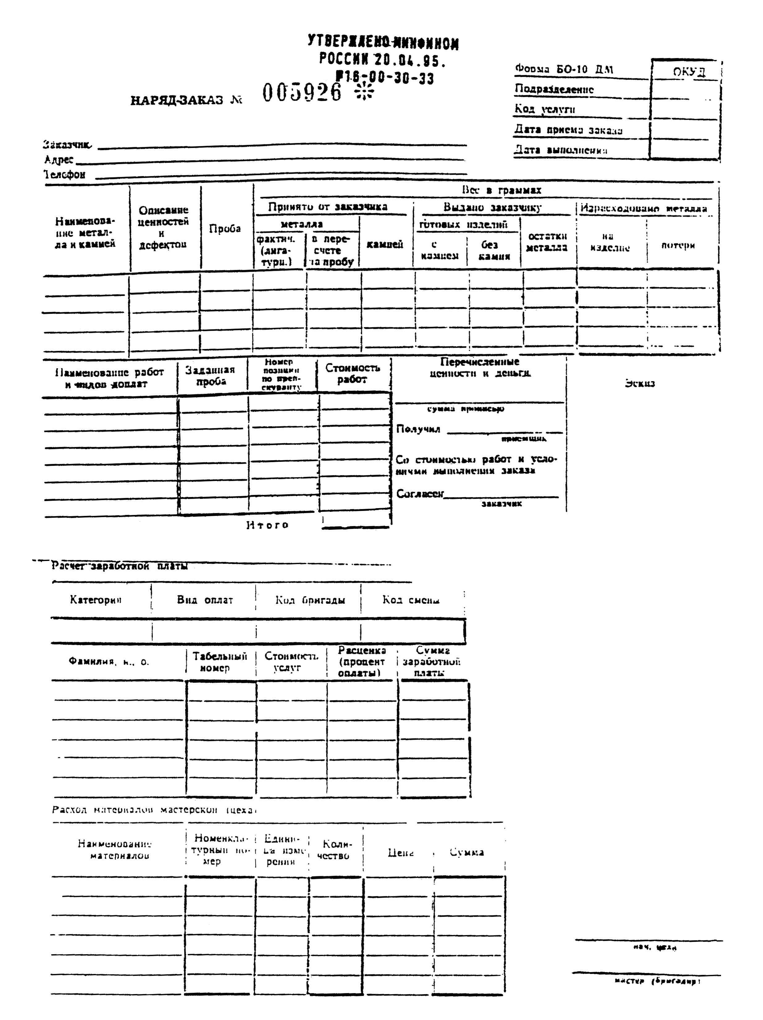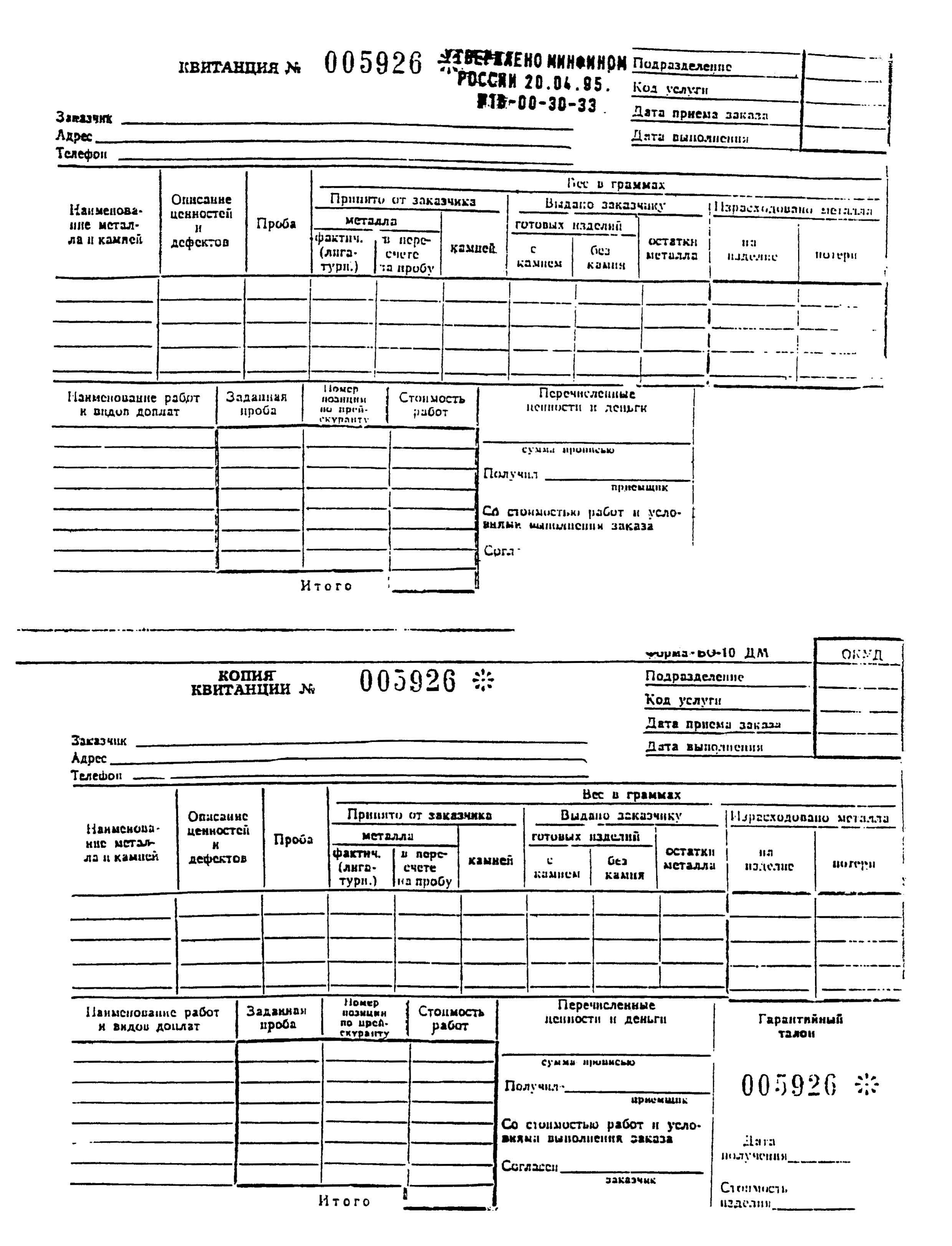 См. данный графический объект (Форма БО-10 ДМ: НАРЯД-ЗАКАЗ, КВИТАНЦИЯ И КОПИЯ КВИТАНЦИИ).